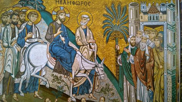 Il Signore Gesù entra a Gerusalemme, la città santa, la capitale regale per eccellenza. Essa accoglie un re, ma un re muto, che accetta di aver bisogno di «un puledro». Un re che salva l’uomo da ogni falsità, che fissa lo sguardo verso il suo destino di morte, un re libero, solo, ma vero. Nel puledro, che si piega dalla fatica possiamo intravvedere Lui che si abbassa per rivelare il volto di un Dio che si china, diminuisce. Egli infatti «svuotò se stesso» ( Fil 2,7) fino a farsi spogliare. Ciò che il verbo, azzittito per amore, riesce a dire gridando “a gran voce” avvolge e travolge l’intero cosmo e stravolge la storia dell’umanità: contempliamo il Christus patiens, che vorrebbe parlare, ma preferisce tacere. Il suo silenzio è per noi peccatori, uomini e donne fragili, non disperazione bensì promessa di redenzione. Rimase umano fino alla fine, per insegnarci a rimanere umani fino alla fine, senza lasciarsi travolgere dagli eventi, dalla paura, dalle illusioni. Libero di amare oltre il limite, rifiutato non offese e non rifiutò il grido della disperazione dei suoi.