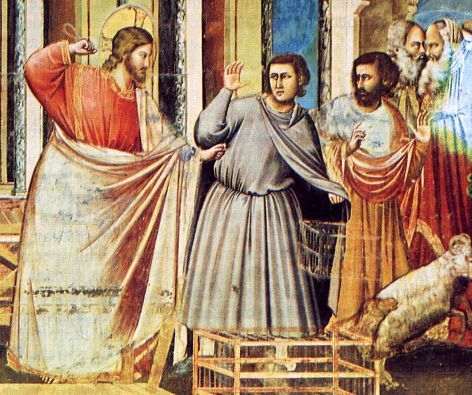 Per gli ebrei il segno visibile più forte della presenza di Dio in mezzo al suo popolo era il Tempio. Gesù ama il Tempio, e nel vangelo di oggi,  usa una espressione che rivela il suo amore profondo, chiamandolo “la casa del Padre mio”. É la prima volta che Gesù usa un linguaggio che mai un ebreo avrebbe ardito usare, chiamando Dio “padre mio” come fa Gesù. E lo fa in una situazione che lo mette in forte contrasto con i sacerdoti del tempio ed i capi del popolo e in una delle circostanze più solenni, la celebrazione della pasqua. Gesù si reca al tempio, ma vedendo i tavoli dei cambiavalute e gli animali che venivano venduti per i sacrifici, proprio nell’area del tempio, sente nel suo cuore una grande indignazione, perché vede che gli affari e gli interessi economici hanno preso il sopravvento sul culto di Dio ed il rispetto dovuto alla dimora del Dio vivente. Così Egli reagisce in maniera durissima, facendosi delle corde, cominciando a cacciare via gli animali e rovesciando i tavoli dei cambiavalute. Gridando dà la ragione del suo gesto: “Non fate della casa del Padre mio un mercato!”.