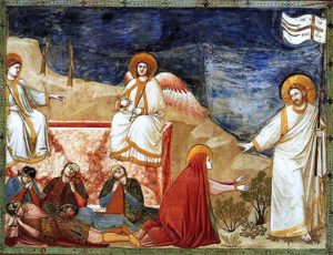 Il primo giorno della settimana, quando ancora è mattino presto, fuori è tutto buio e l’oscurità della notte non ha ceduto il passo al chiarore del giorno, quando la gente ancora non è uscita da casa, compresi gli amici di Gesù, Maria di Magdala si reca al sepolcro: non si rassegna alla perdita del suo Signore, maestro, amico e compagno di tanti momenti passati insieme. Maria non può e non vuole dimenticare la persona che le ha cambiato la vita, che le ha dato speranza, che le ha fatto scoprire la bellezza delle cose e, soprattutto, dell’amore, quello vero, quello donato gratuitamente senza interessi e senza calcoli. No, Maria di Magdala non può dimenticare i tanti momenti passati col Maestro, lei non vuole rassegnarsi alla morte del suo amico: troppo pieno di vita quell’uomo di nome Gesù, troppa speranza nelle Sue parole che parlavano di risurrezione, di eternità. No, Maria di Magdala non può rassegnarsi alla morte del Maestro, a una tomba chiusa da una pietra.