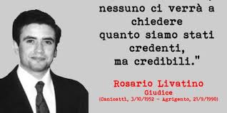“Oggi, ad Agrigento, è stato beatificato Rosario Angelo Livatino, martire della giustizia e della fede. Nel suo servizio alla collettività come giudice integerrimo, che non si è lasciato mai corrompere, si è sforzato di giudicare non per condannare ma per redimere. Il suo lavoro lo poneva sempre “sotto la tutela di Dio”; per questo è diventato testimone del Vangelo fino alla morte eroica. Il suo esempio sia per tutti, specialmente per i magistrati, stimolo ad essere leali difensori della legalità e della libertà” (Papa Francesco).