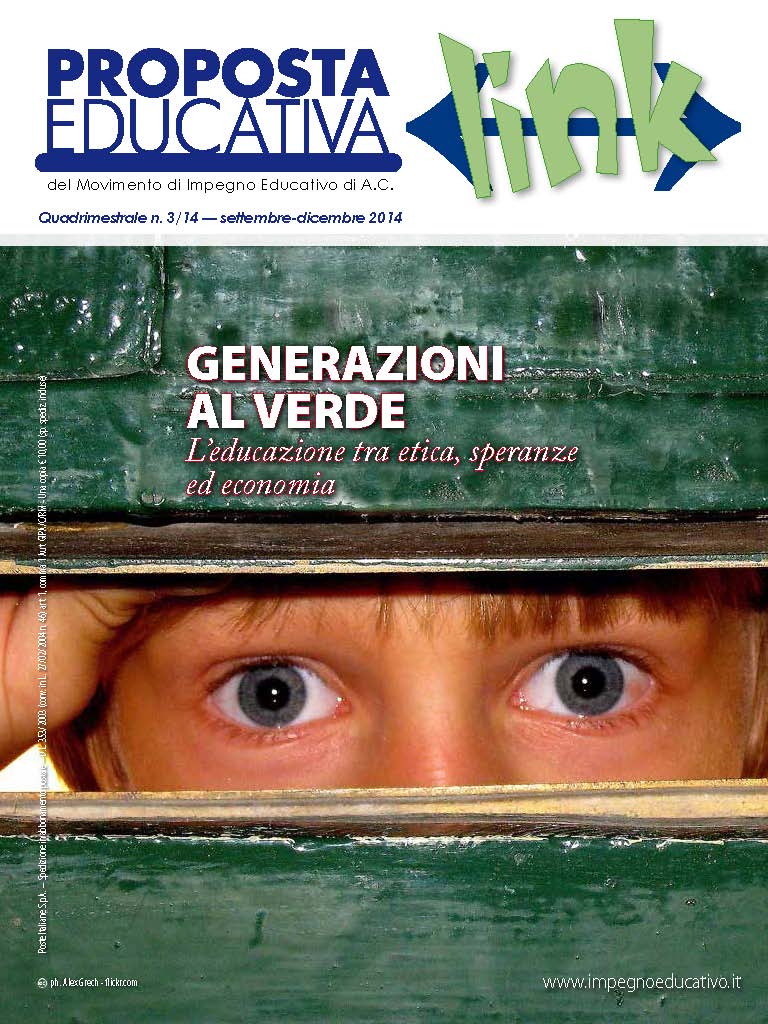 GENERAZIONI AL VERDE – L’educazione tra etica, speranze ed economia – «…Abbiamo individuato in una declinazione “inedita” e “sinergica” dell’economia, dell’etica, dell’educazione l’investimento attraverso il quale dare sostanza e prospettiva a quell’impegno personale e collettivo che muove dalla speranza di essere in grado di “potere”, nonostante soggetti “forti”, “potenti” facciano di tutto per convincerci che cambiare la situazione data … Il nuovo numero di «Proposta Educativa»